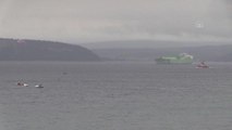 ÇANAKKALE - Çanakkale Boğazı'ndan askeri römorkör tarafından çekilen kırmızı cisim Çanakkale'de merak konusu oldu. 3 saatte Saroz Körfezi'ne getirilen cismin atışlarda kullanılan hedef tahtası olduğu ortaya çıktı.