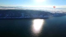 Daha önce balıkların yüzdüğü metrelerce derinlikte suyun bulunduğu bu alanlarda rahatlıkla yürünebiliyor. Üzerleri midyelerle kaplı kayalar ise su seviyesinden metrelerce yukarıda bulunuyor.