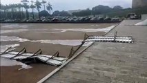Vento derruba tapumes em obra na Câmara dos Deputados, nesta sexta-feira (31/)