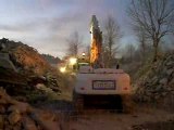 Vidéo de la pelle Caterpillar 365Bl de l'entreprise FERRARI Démolition sur la démolition de la tour Zorn R+10 à Wittelsheim en version UHD et à la mine Amélie en version rétro.