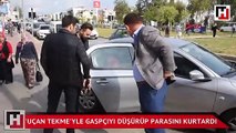 'Uçan tekme'yle gaspçıyı düşürüp parasını kurtardı