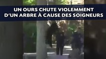 Un ours chute violemment d'un arbre à cause des soigneurs
