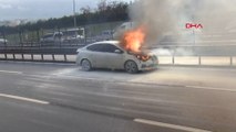 100 Karayolu'nda bir otomobil alev alev yandı.