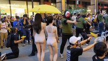 Demonstrators in Taipei, Taiwan marched to Hong Kong's representative office after a performance supporting Hong Kong's democracy movement.