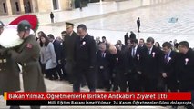 Milli Eğitim Bakanı Ziya Selçuk, öğretmenlerle birlikte saat 08.50’de Anıtkabir’e ziyarette bulundu. Selçuk ve beraberindekiler, Aslanlı Yol’dan yürüyerek Atatürk’ün mozolesine çelenk bırakıp, saygı duruşunda bulundu. Daha sonra Misak-ı Milli Kulesi’ne geçen Bakan Selçuk, Anıtkabir Özel Defteri’ni imzaladı. Bakan Selçuk, deftere şunları yazdı: “Başöğretmenimiz Aziz Atatürk, Milletimizin dimağına ışık tutan öğretmenlerimizin ’24 Kasım Öğretmenler Günü’ vesilesiyle huzurlarınızdayız. Vatan evlatlarının istikbali için eğitim ve öğretimin her aşamasında, milletimizle beraber, hiçbir zorluk karşısında yılmadan, sabır ve metanet içinde bu kutlu eğitim yürüyüşümüzü sürdürmeye eğitime gönül veren tüm öğretmenler olarak kararlıyız. Milletimizin bize bahşetmiş olduğu bu yüce görevi, milletimiz ve tüm insanlık için ilim ışığında sürdürmeye, tüm gayret ve gücümüzle devam edeceğiz. Yeni nesli, öğrenimin her aşamasında verimli, etkili ve başarılı kılmak için süratle gerekli bilgi ve tecrübelerle donatma bilincindeyiz. Cumhuriyetimizin bizlerden aklı hür, vicdanı hür, irfanı hür fertler beklediğinin idrakindeyiz.