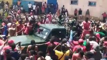 Des militaire acclamés par des manifestants à Labé