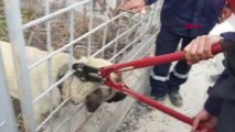 Adıyaman'da evde yalnız bırakılan 4 yaşındaki yabancı uyruklu çocuk, başını demir korkuluklara sıkıştırdı. Çığlıkları duyan komşular çocuğun yardımına koşarken, itfaiye ekipleri çocuğu kurtardı. (İHA)