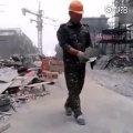 According to reports, the man named Yang Caiming is a construction worker. Since he felt relaxed after work, he started to skip.