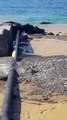 Düzce'nin Akçakoca ilçesinde, sahildeki kumun kıyıya 3 metre çekilmesi ilginç görüntü oluşturdu.