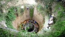 This was the stunning moment a python coiled itself around a rescuer who climbed down a 50-feet-deep well in India to pull it up.