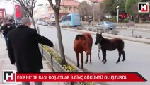 Edirne'de şehrin en işlek caddesinde görülen başı boş atlar yeniden gündem oldu. Atların trafiği birbirine kattığı anlar ise görüntülere yansıdı.