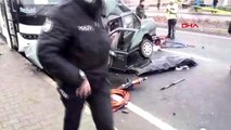 Son dakika haberleri! Otomobil, kamyon ve otobüs arasında sıkıştı: 2 yaralı