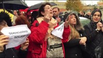 Çocukları Doğa Kolejinde eğitim gören veliler, kurumun devriyle ilgili açıklamanın ertelenmesini protesto etti.