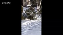 Pug Struggles to Grab Treat Kept on Table's Center
