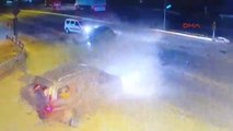 Kazada, otomobildeki 2 kişi yaralandı. Alkol testinde otomobil sürücüsünün 1.34 promil alkollü olduğu tespit edilirken, kaza anı güvenlik kamerasına yansıdı.