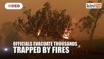 Thousands swarmed to beaches on Australia's east coast on Tuesday to escape fierce wildfires bearing down on several seaside towns, as the government readied naval vessels and military helicopters to aid firefighting and evacuations.