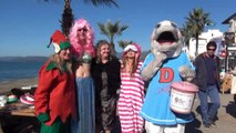 Muğla'nın Fethiye ilçesinde bir grup, yardıma muhtaç çocuklar için düzenlenen etkinlikte kostümlerle denize girdi.