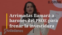 Arrimadas llamará a barones del PSOE para frenar la investidura