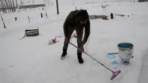 Van'ın İpekyolu ilçesinde yaşayan Cezmi Fazla, evinin bahçesinde Bodrum'da cansız bedeni sahile vuran Aylan bebeğin kardan heykelini yaptı.