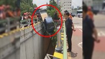 트럭이 바다로 추락하는 것을 본 40대 운전자가 바다에 뛰어들어 탑승자 2명을 구조했습니다.
