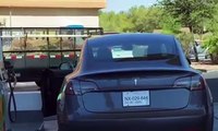 Il essaie de mettre de l'essence dans sa Tesla... électrique