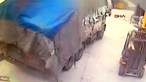 Üzerine kumaş balyaları düşen kişi feci şekilde can verdi... O anlar kamerada
