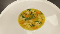 Shtojmë lëngun e pulës dhe e lëmë derisa të ziejë, shtojmë lulelakrën të pastruar dhe të prerë në boçe. E lëmë të gatuhet derisa të zbutet.