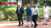 UK PM Boris Johnson tries his hands on ‘Charkha’ at Sabarmati Ashram