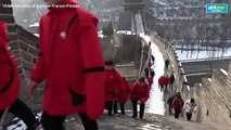An overnight snowfall leaves China's Great Wall blanketed in white, to the delight of tourists and children who came to climb the popular Juyong Pass near Beijing.