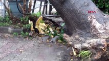 Kökünün çürüdüğü görülen ağaç itfaiye ekipleri tarafından kaldırılırken devrilen ağaç kafe olarak kullanılan tarihi çeşmenin çatı kısmında hasar oluşturdu.