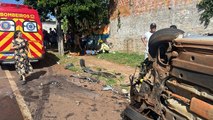 Ônix capota após colisão com Spacefox e deixa duas pessoas feridas no Bairro Neva