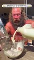 Kahvaltıda testis yiyen adam yok artık dedirtti! Testis, süt ve yulaf karışımını afiyetle yedi…