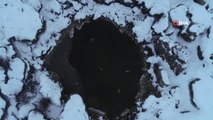 Vatandaşlardan Serdar Durer, gazetecilere yaptığı açıklamada, "kış yüzme şenliği" adı altında her yıl burada yüzdüklerini söyledi.