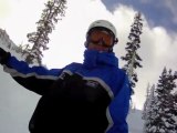 Helmet cam footage shows the skier approaching the top of the cliff then plunging in slow-motion only just reaching the fresh powder at the bottom.