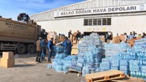 -yardım götüren araçların sırayla bekleyişi