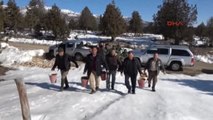 Mersin genelinde yüksek rakımlarda yemleme çalışmalarını sürdürdüklerini ifade eden Arslan, "Yöremizde yaşayan bütün yaban hayvanlarının yem ihtiyacını karşılamaya çalışıyoruz. Bu yılda Mersin Şube Müdürlüğü olarak yaban hayvanlarına 2 bin kilogram besi yemi, bunlar buğday, mısır, arpa ve benzeri, 750 kilogram saman, 70 kilogram pazar artığı ve 500 kilogram da yonca olmak üzere toplamda 3 bin 320 kilogram yem atılmıştır. Bugün de Erdemli Doğa Koruma Milli Parklar şefliğimiz sınırlarımız dahilinde bulunan Güneyli Mahallesi Tolaz mevkisinde yemleme çalışması yapmak için toplandık. Çalışma kapsamında bugün burada 300 kilogram besi yemi, buğday, mısır, arpa ve 100 kilogram pazar artığı, ekmek ve yeşillik kullanılarak sahada her çeşit hayvanın yem ihtiyacını karşılamaya çalışacağız. Bunun sonucunda da yaban hayvanlarının karlarla kaplı bu yüksek rakımlarda hayatlarını devam ettirmelerini sağlayacağız" diye konuştu.
