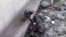 Erzurum ayaklarına dolanan ip yüzünden suya düşen güvercini halatla inerek kurtardı