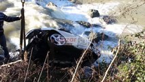 İş makinesi dereye yuvarlandı, operatör kayboldu