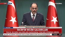 Cumhurbaşkanlığı Sözcüsü Büyükelçi İbrahim Kalın, “Rejimin bu ay sonuna kadar girdiği yerlerden çekilerek çatışmasızlık bölgesi sınırlarına geri çekilmesi konusu bizim öncelikli konularımızdan birisidir. Rejim bu güne kadar yüzlerce defa İdlib Mutabakatını ihlal etmiştir. Terörizmle mücadele bahanesiyle bundan sonra yapacağı her bir hatanın çok ağır sonuçları olacaktır” dedi.
