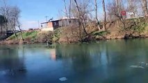 Deli Çayı buz tuttu, vatandaşlar üstünde çay keyfi yaptı