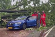 The filmer told Newsflare: "I was sat with my mum at her house when all of a sudden we heard a loud crash, we both jumped up to see what the noise was and discovered that the tree outside of her living room window had been uprooted and had fallen against the house.