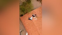 Man Uses Cup to Remove Water From His Waterlogged Car on Flooded Street