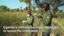 Uganda military fights back against destructive locust swarms