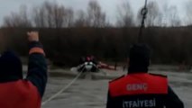 ( AĞRI ) - 3 gün boyunca nehirde mahsur kalan kurt köpeğini itfaiye ekibi kurtardı AĞRI