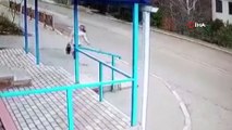 Ayağı takılıp düşen kadın ölümden kıl payı kurtuldu
