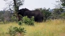 Un éléphant en colère s'en prend à un arbre... puissant