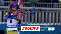 VIDÉO BIATHLON - La Norvégienne Tiril Eckhoff a remporté ce dimanche la mass start de Nove Mesto (République tchèque) devant la Suédoise Hanna Oeberg et l'Allemande Franziska Preuss, alors que la Française Justine Braisaz s'est classée quatrième.