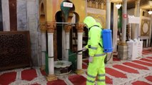 Hz. İbrahim Camii'nde yapılan dezenfeksiyon çalışmalarından görüntüler