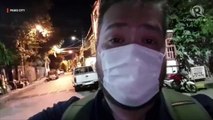JC Gotinga, together with Pasig City police, patrols the streets of Barangay Santolan during the first night of the 8 pm curfew in the city on Sunday, March 15, 2020 #MMLockdown