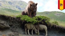 Video footage from Thursday (April 2) even shows her brave little dog try to pick a fight with the animal.
